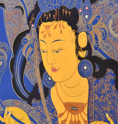 | 唐卡是歷史的瑰寶,現(xiàn)已被例入國家非物質文化遺產(chǎn)名錄,得到了高度的重視和保護。同時由于顏料的珍稀、繪制周期長、工藝復雜大大增強了其珍藏價值。一幅好的作品可遇不可求,近年來唐卡已成為收藏界炙手可熱的藏品。 | 唐卡的形式便于攜帶,其內容體現(xiàn)了藏傳佛教的莊重、神圣、華貴,被稱為“移動的佛像”。同時也是修行者積累善業(yè),追尋心靈的平靜與安寧的一個過程。 | 唐卡的內容包羅萬象,它以圖像的方式承載著藏族文化精髓,是藏族智慧的結晶,廣泛傳播了藏地的文化、歷史和宗教理論。 | 唐卡絢麗的色彩、流暢的線條、嚴謹?shù)慕Y構,都充滿著濃郁的高原和游牧民族風情,無疑是難得的藝術珍品。值得一提的是唐卡繪制顏料全部為天然礦物顏料,畫面效果艷麗,可以保存千年而不變色。 |