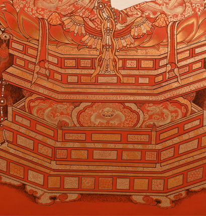 | 唐卡是歷史的瑰寶,現(xiàn)已被例入國家非物質(zhì)文化遺產(chǎn)名錄,得到了高度的重視和保護。同時由于顏料的珍稀、繪制周期長、工藝復(fù)雜大大增強了其珍藏價值。一幅好的作品可遇不可求,近年來唐卡已成為收藏界炙手可熱的藏品。 | 唐卡的形式便于攜帶,其內(nèi)容體現(xiàn)了藏傳佛教的莊重、神圣、華貴,被稱為“移動的佛像”。同時也是修行者積累善業(yè),追尋心靈的平靜與安寧的一個過程。 | 唐卡的內(nèi)容包羅萬象,它以圖像的方式承載著藏族文化精髓,是藏族智慧的結(jié)晶,廣泛傳播了藏地的文化、歷史和宗教理論。 | 唐卡絢麗的色彩、流暢的線條、嚴謹?shù)慕Y(jié)構(gòu),都充滿著濃郁的高原和游牧民族風(fēng)情,無疑是難得的藝術(shù)珍品。值得一提的是唐卡繪制顏料全部為天然礦物顏料,畫面效果艷麗,可以保存千年而不變色。 |
