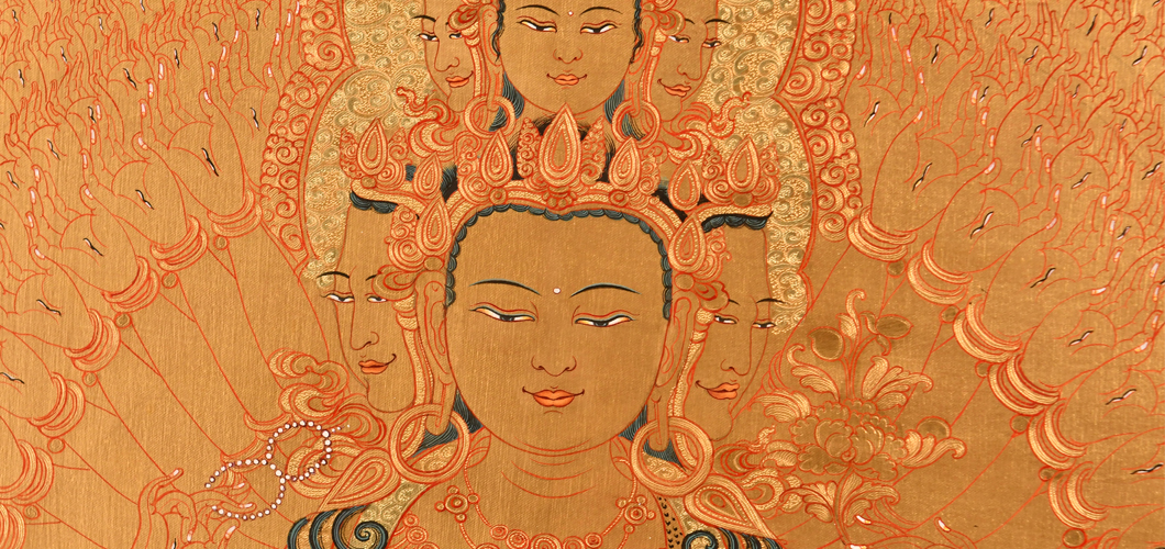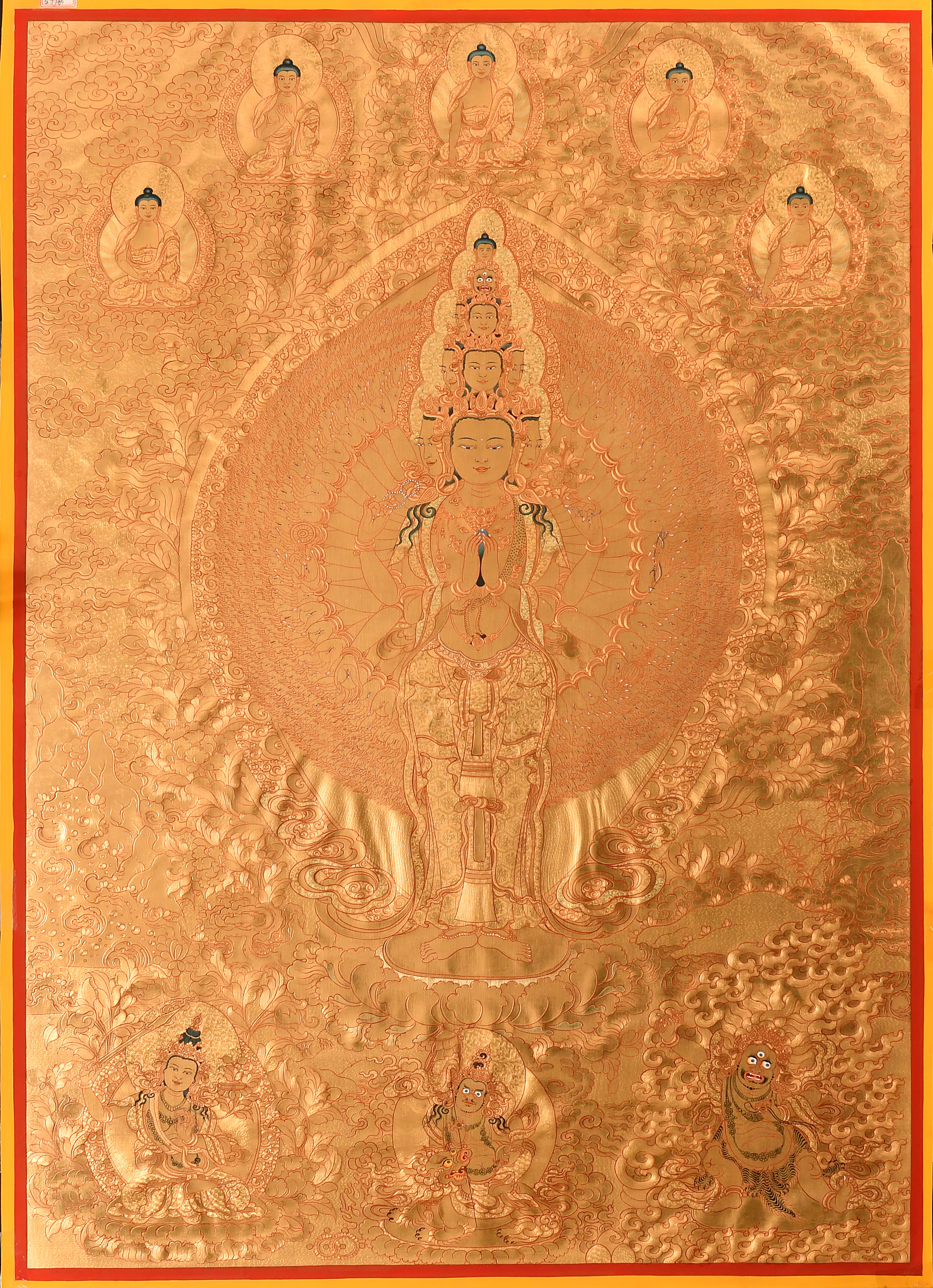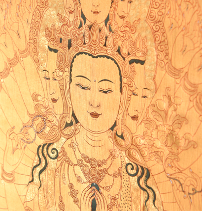 產地:熱貢 工藝:金唐 創作年份:2020 題材:千手觀音 繪制時間:6月 尺寸:*70*100cm 裝裱: 材質:織面 使用場地:書房