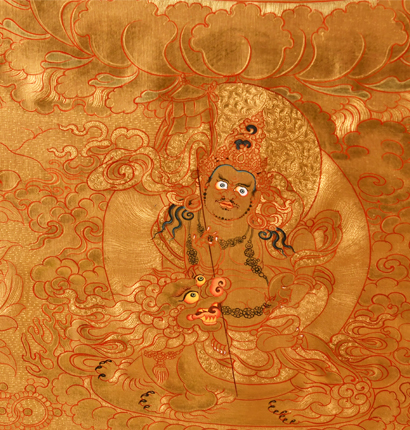此作品為青海熱貢出家師父尖措大師之作,尺寸為100*70CM,金唐。