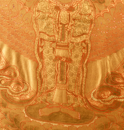 用純金箔著色朱砂描線,金碧輝煌、金光燦燦,千百年不褪色。