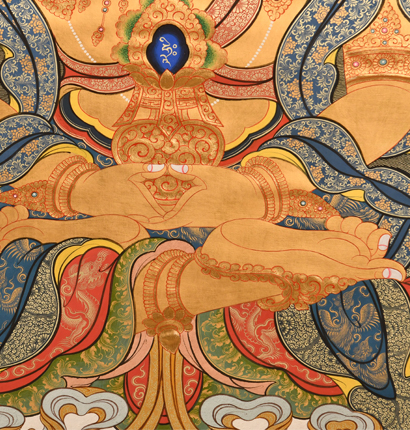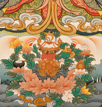 | 唐卡是歷史的瑰寶,現(xiàn)已被例入國家非物質(zhì)文化遺產(chǎn)名錄,得到了高度的重視和保護(hù)。同時(shí)由于顏料的珍稀、繪制周期長、工藝復(fù)雜大大增強(qiáng)了其珍藏價(jià)值。一幅好的作品可遇不可求,近年來唐卡已成為收藏界炙手可熱的藏品。 | 唐卡的形式便于攜帶,其內(nèi)容體現(xiàn)了藏傳佛教的莊重、神圣、華貴,被稱為“移動(dòng)的佛像”。同時(shí)也是修行者積累善業(yè),追尋心靈的平靜與安寧的一個(gè)過程。 | 唐卡的內(nèi)容包羅萬象,它以圖像的方式承載著藏族文化精髓,是藏族智慧的結(jié)晶,廣泛傳播了藏地的文化、歷史和宗教理論。 | 唐卡絢麗的色彩、流暢的線條、嚴(yán)謹(jǐn)?shù)慕Y(jié)構(gòu),都充滿著濃郁的高原和游牧民族風(fēng)情,無疑是難得的藝術(shù)珍品。值得一提的是唐卡繪制顏料全部為天然礦物顏料,畫面效果艷麗,可以保存千年而不變色。 |