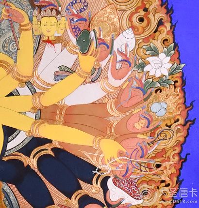 | 唐卡“師傅”開臉,筆路穩重流暢。體現完美天人相,可見佛菩薩慈眉善目,賦予唐卡畫像生的靈氣。 | 細節決定品質,點睛之筆不到位影響整體美觀,五官比例不協調,面目呆板,缺乏靈氣。 |