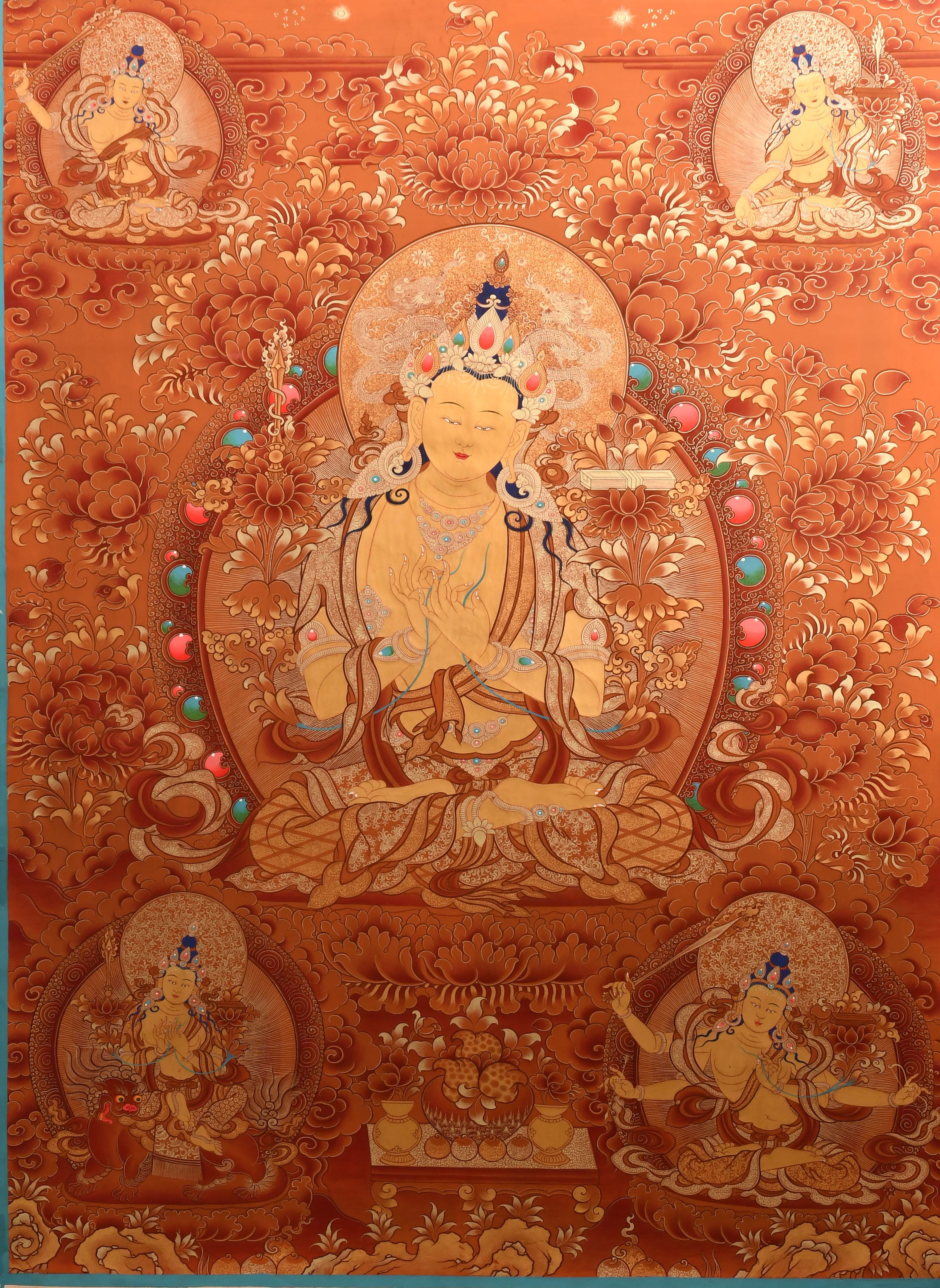 五部文殊菩薩紅唐70x100cm