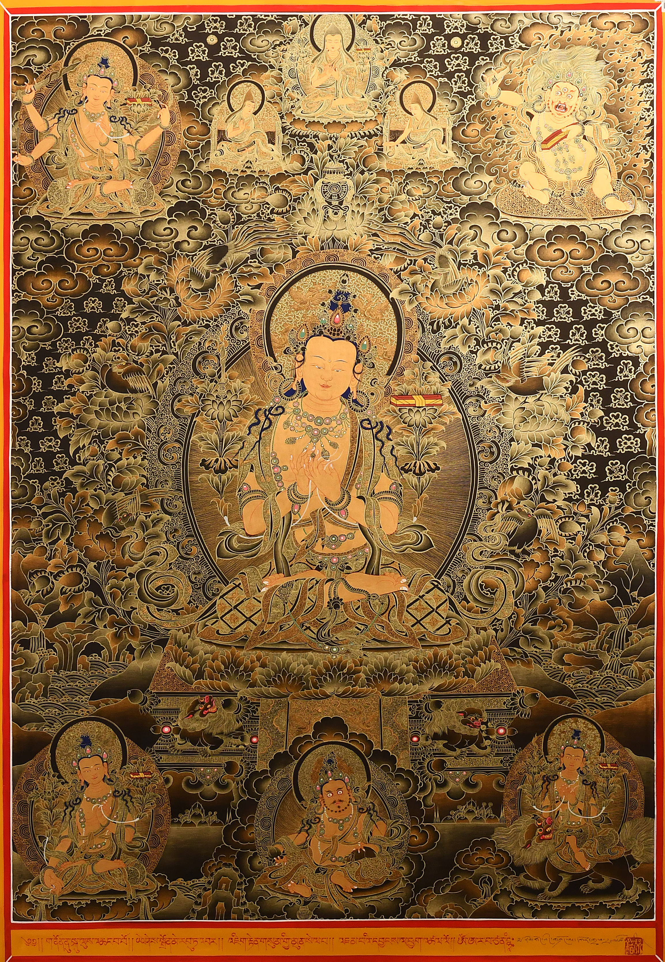 白文殊菩薩黑金100x70cm