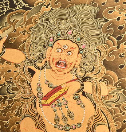 | 唐卡是歷史的瑰寶,現(xiàn)已被例入國家非物質(zhì)文化遺產(chǎn)名錄,得到了高度的重視和保護(hù)。同時(shí)由于顏料的珍稀、繪制周期長、工藝復(fù)雜大大增強(qiáng)了其珍藏價(jià)值。一幅好的作品可遇不可求,近年來唐卡已成為收藏界炙手可熱的藏品。 | 唐卡的形式便于攜帶,其內(nèi)容體現(xiàn)了藏傳佛教的莊重、神圣、華貴,被稱為“移動(dòng)的佛像”。同時(shí)也是修行者積累善業(yè),追尋心靈的平靜與安寧的一個(gè)過程。 | 唐卡的內(nèi)容包羅萬象,它以圖像的方式承載著藏族文化精髓,是藏族智慧的結(jié)晶,廣泛傳播了藏地的文化、歷史和宗教理論。 | 唐卡絢麗的色彩、流暢的線條、嚴(yán)謹(jǐn)?shù)慕Y(jié)構(gòu),都充滿著濃郁的高原和游牧民族風(fēng)情,無疑是難得的藝術(shù)珍品。值得一提的是唐卡繪制顏料全部為天然礦物顏料,畫面效果艷麗,可以保存千年而不變色。 |