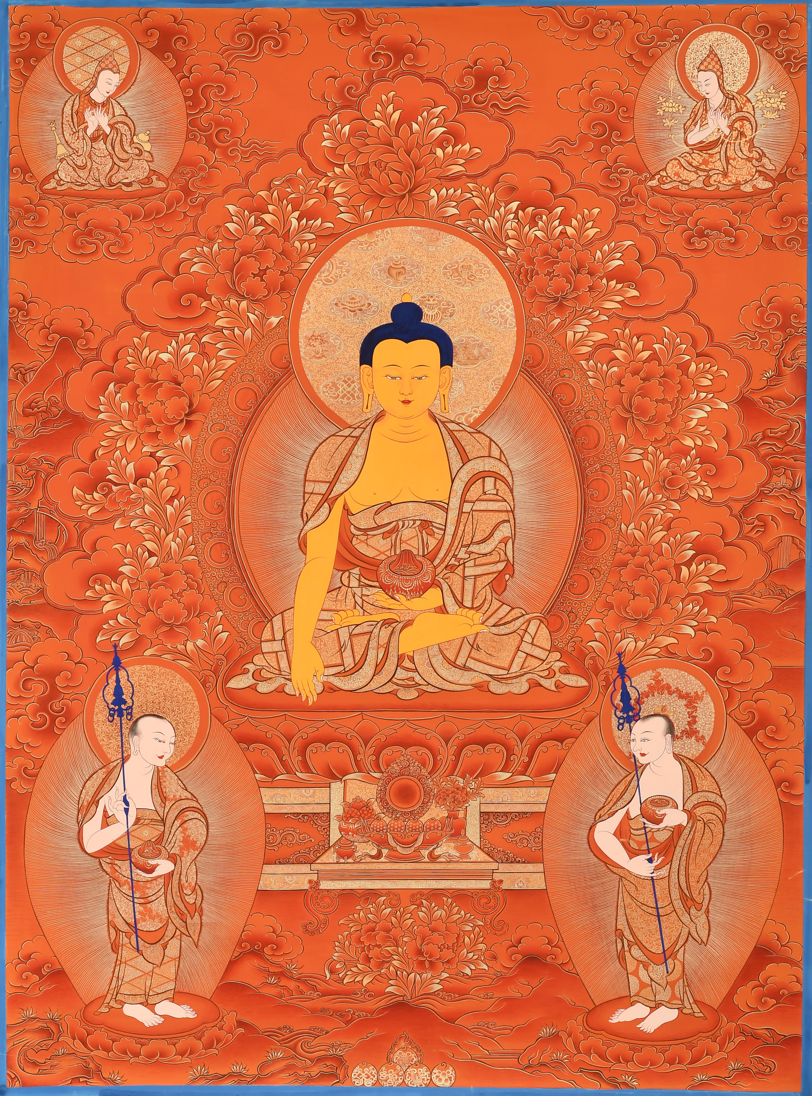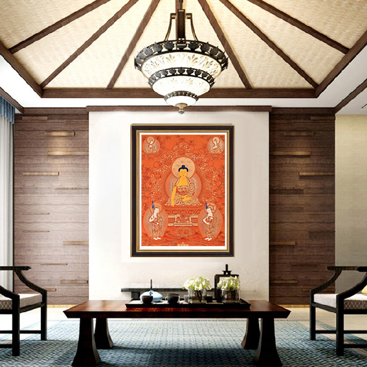 產(chǎn)地:熱貢 工藝:朱紅唐 創(chuàng)作年份:2020 題材:釋迦牟尼 繪制時間:3月 尺寸:*100*70cm 裝裱: 材質(zhì):織面 使用場地:辦公室