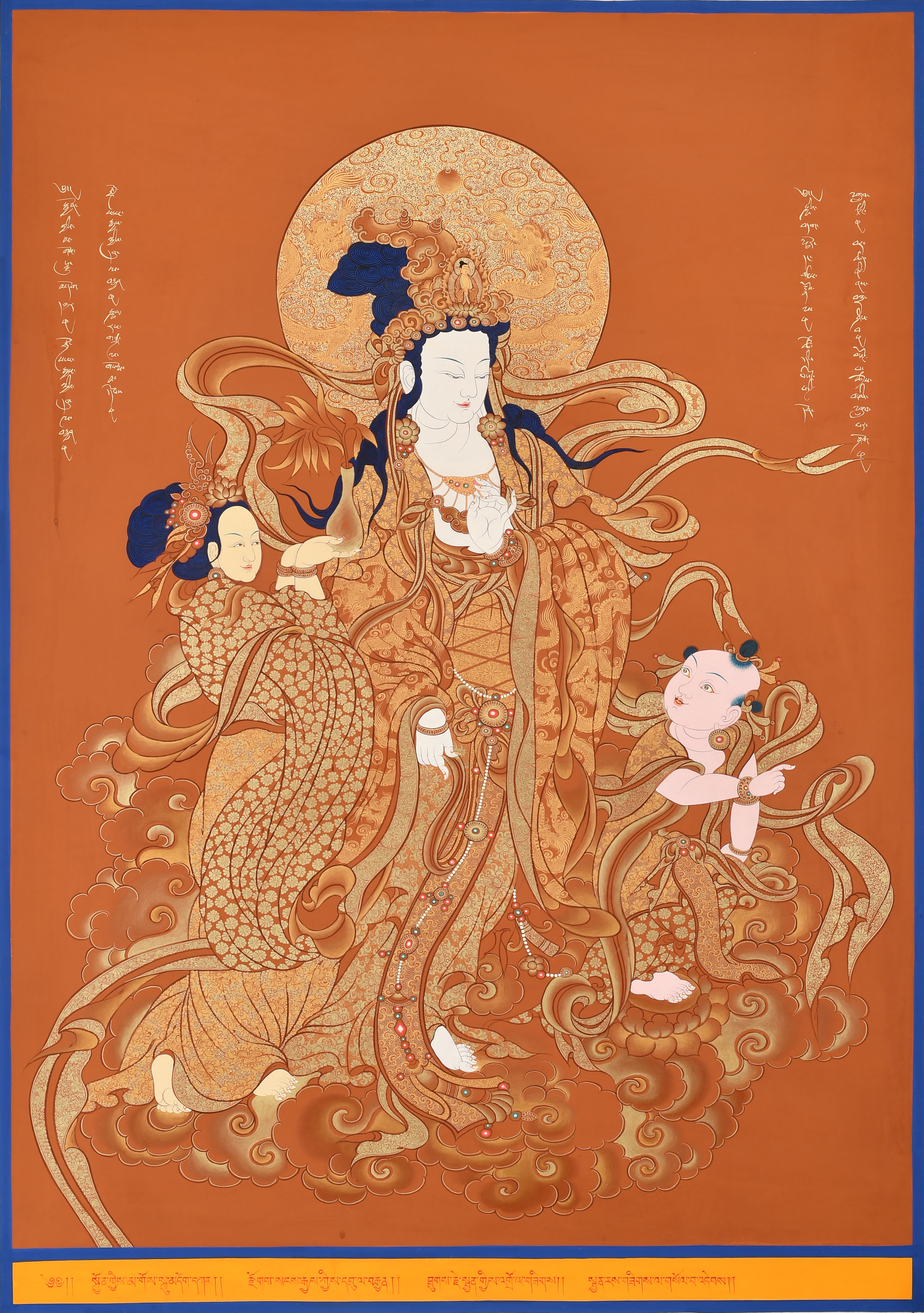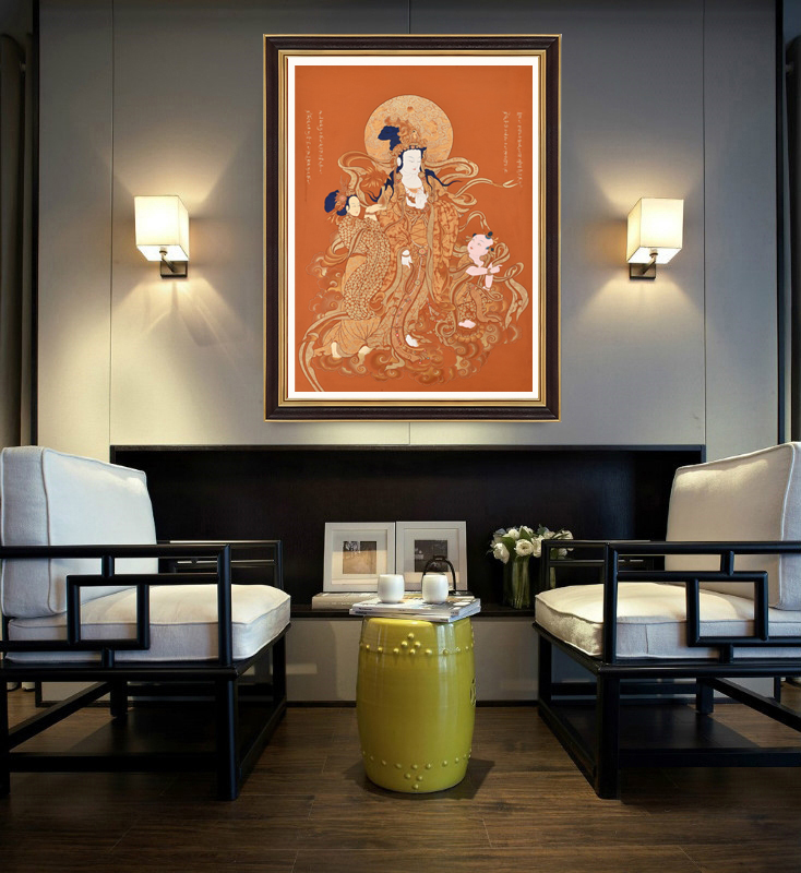 產(chǎn)地:熱貢 工藝:朱紅唐 創(chuàng)作年份:2020 題材:送子觀音 繪制時(shí)間:4月 尺寸:*100*70cm 裝裱: 材質(zhì):織面 使用場(chǎng)地:辦公室
