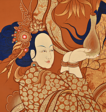 | 唐卡是歷史的瑰寶,現(xiàn)已被例入國家非物質(zhì)文化遺產(chǎn)名錄,得到了高度的重視和保護(hù)。同時(shí)由于顏料的珍稀、繪制周期長、工藝復(fù)雜大大增強(qiáng)了其珍藏價(jià)值。一幅好的作品可遇不可求,近年來唐卡已成為收藏界炙手可熱的藏品。 | 唐卡的形式便于攜帶,其內(nèi)容體現(xiàn)了藏傳佛教的莊重、神圣、華貴,被稱為“移動(dòng)的佛像”。同時(shí)也是修行者積累善業(yè),追尋心靈的平靜與安寧的一個(gè)過程。 | 唐卡的內(nèi)容包羅萬象,它以圖像的方式承載著藏族文化精髓,是藏族智慧的結(jié)晶,廣泛傳播了藏地的文化、歷史和宗教理論。 | 唐卡絢麗的色彩、流暢的線條、嚴(yán)謹(jǐn)?shù)慕Y(jié)構(gòu),都充滿著濃郁的高原和游牧民族風(fēng)情,無疑是難得的藝術(shù)珍品。值得一提的是唐卡繪制顏料全部為天然礦物顏料,畫面效果艷麗,可以保存千年而不變色。 |