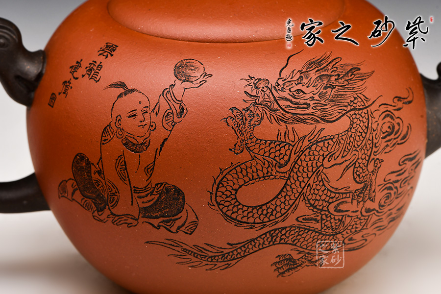B面: 裝飾: 人龍刻繪 裝飾者:朱建偉 裝飾內(nèi)容: 刻童靈趣可愛,刻龍威風(fēng)凜凜