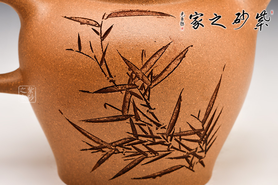 壺體簡潔腴潤,線條流暢而富有張力,體現(xiàn)了風(fēng)韻壺的含蓄美。壺鈕、嘴、把采用暗接過渡,整壺更顯秀潤雅致,充分的體現(xiàn)了紫砂的特質(zhì),端莊典雅,不失風(fēng)韻!