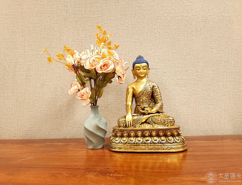產地:尼泊爾佛像 工藝:鎏金 創作年份:2020 題材:釋迦牟尼 繪制時間:0日 尺寸:*33cm 重量:0 g 材質:紫銅 使用場地: