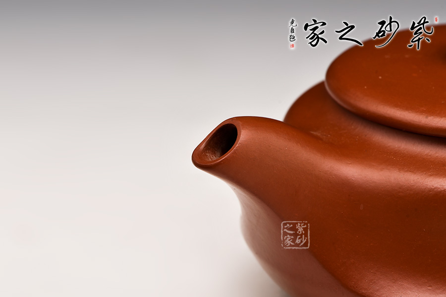 特點(diǎn):質(zhì)感綿密、緊實(shí)細(xì)緻,持之扎實(shí)沉重、紅潤(rùn)豔麗,泥中極品,無(wú)以倫比;泥胚含少許原礦顆粒,沖淋熱水后色變極大,呈紅中帶紫,養(yǎng)壺易現(xiàn)“包漿”之美。