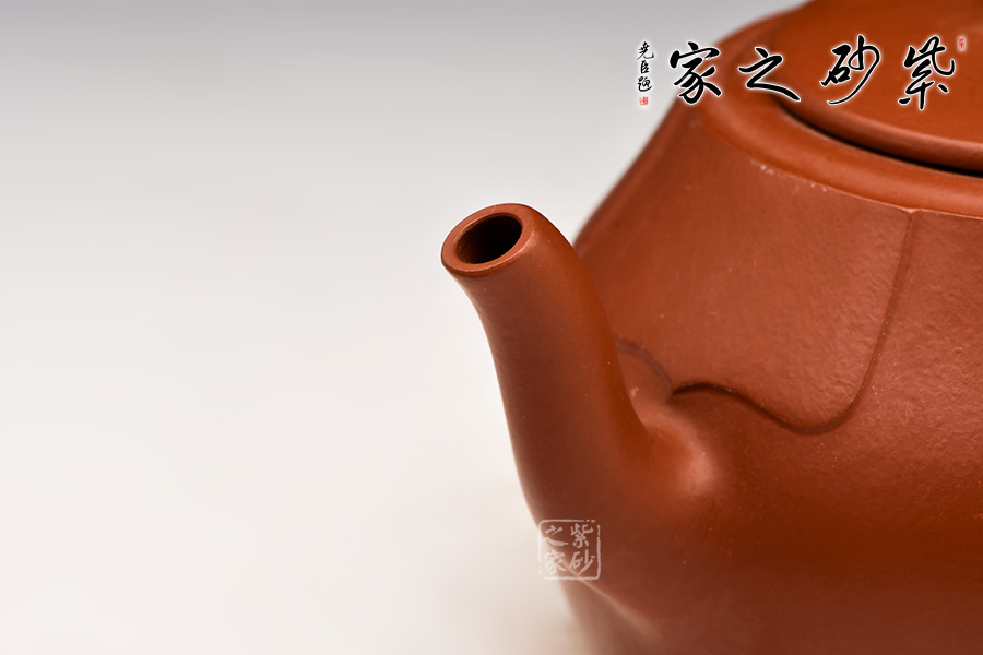 特點:質(zhì)感綿密、緊實細(xì)緻,持之扎實沉重、紅潤豔麗,泥中極品,無以倫比;泥胚含少許原礦顆粒,沖淋熱水后色變極大,呈紅中帶紫,養(yǎng)壺易現(xiàn)“包漿”之美。