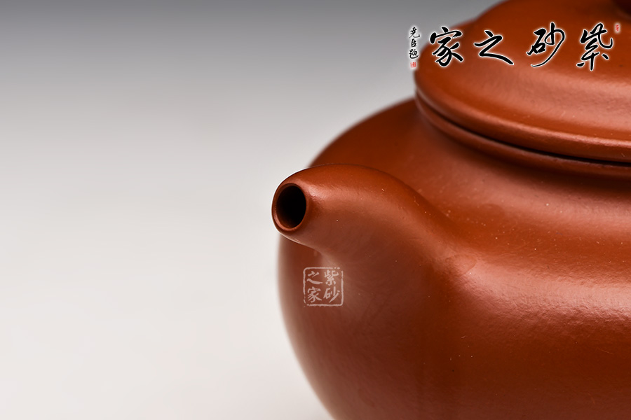 特點:質(zhì)感綿密、緊實細緻,持之扎實沉重、紅潤豔麗,泥中極品,無以倫比;泥胚含少許原礦顆粒,沖淋熱水后色變極大,呈紅中帶紫,養(yǎng)壺易現(xiàn)“包漿”之美。