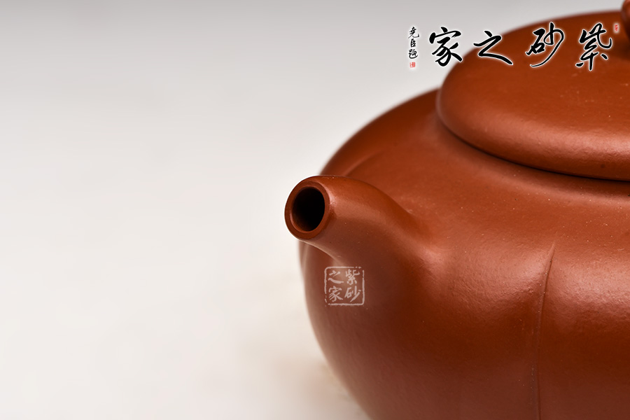 特點:質(zhì)感綿密、緊實細(xì)緻,持之扎實沉重、紅潤豔麗,泥中極品,無以倫比;泥胚含少許原礦顆粒,沖淋熱水后色變極大,呈紅中帶紫,養(yǎng)壺易現(xiàn)“包漿”之美。