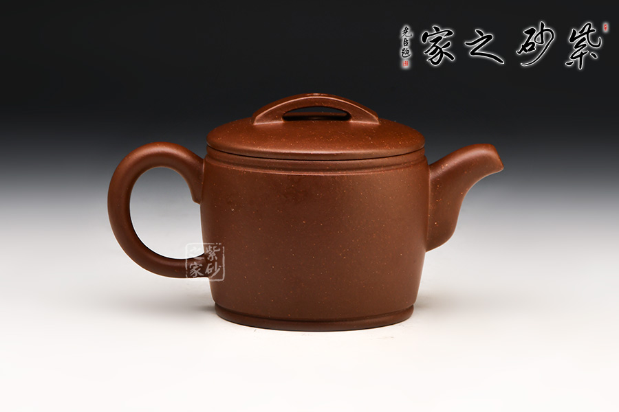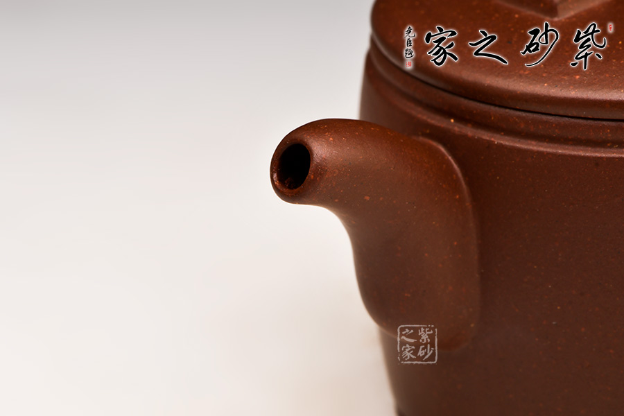 漢瓦屬于圓器當(dāng)中的一種,歷來多位藝人都有仿制此種款型。圓筒形壺體,上侈下教,短流勢自然,蓋平略見弧,泥質(zhì)堅結(jié),砂色暗紅。