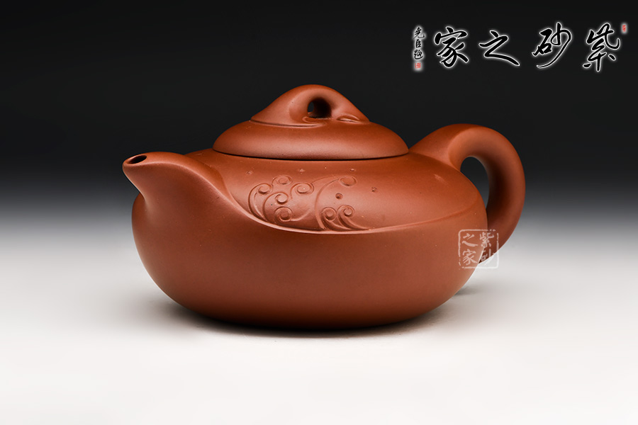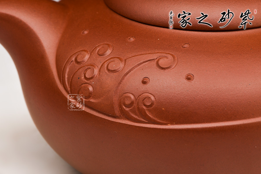 此作最吸引人之處在于壺身上的紋路裝飾,觀之富貴大氣,呈祥如意,對應(yīng)“紫氣東來”,顯此壺之別樣風(fēng)韻。