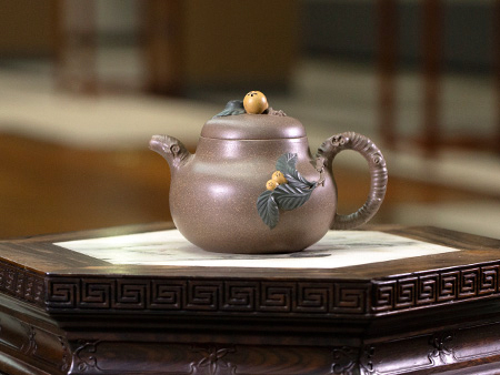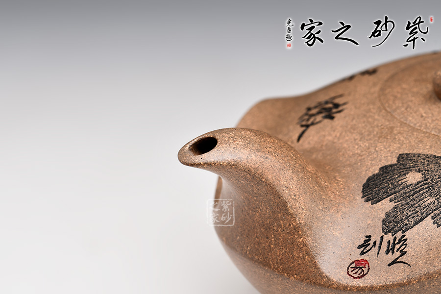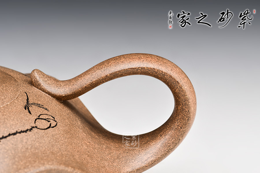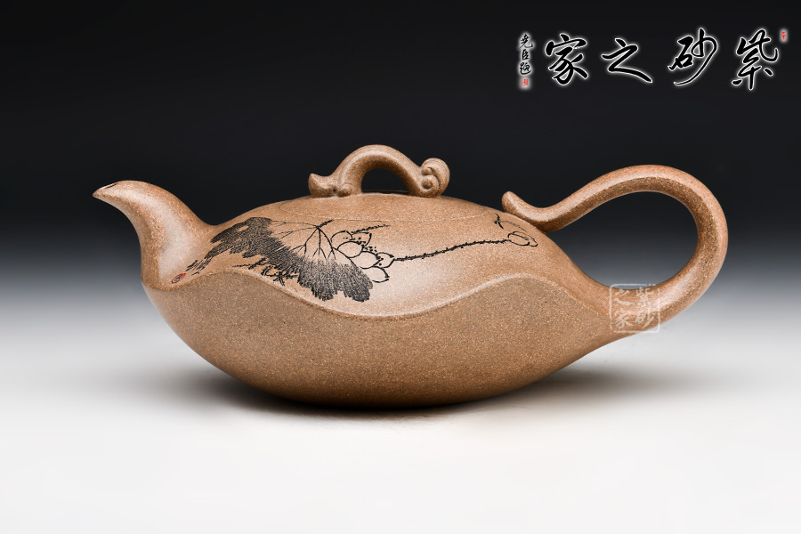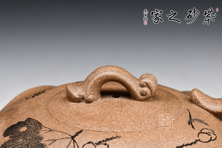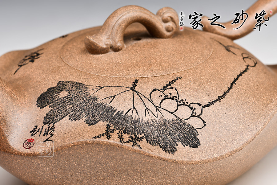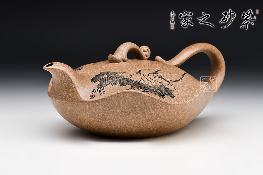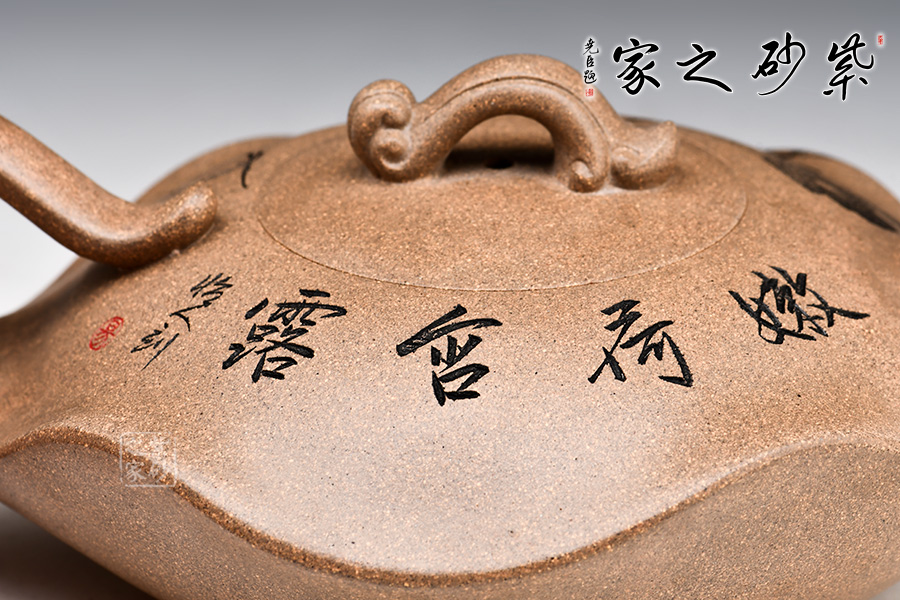 此作壺身呈荷葉綻開的狀態(tài),自然靈動,欲要包容這世界萬千。如意形的壺鈕,增添禪蓮之性,呈現(xiàn)出一派東方文化的風尚,中庸、祥和、寧靜、愉悅和超脫。