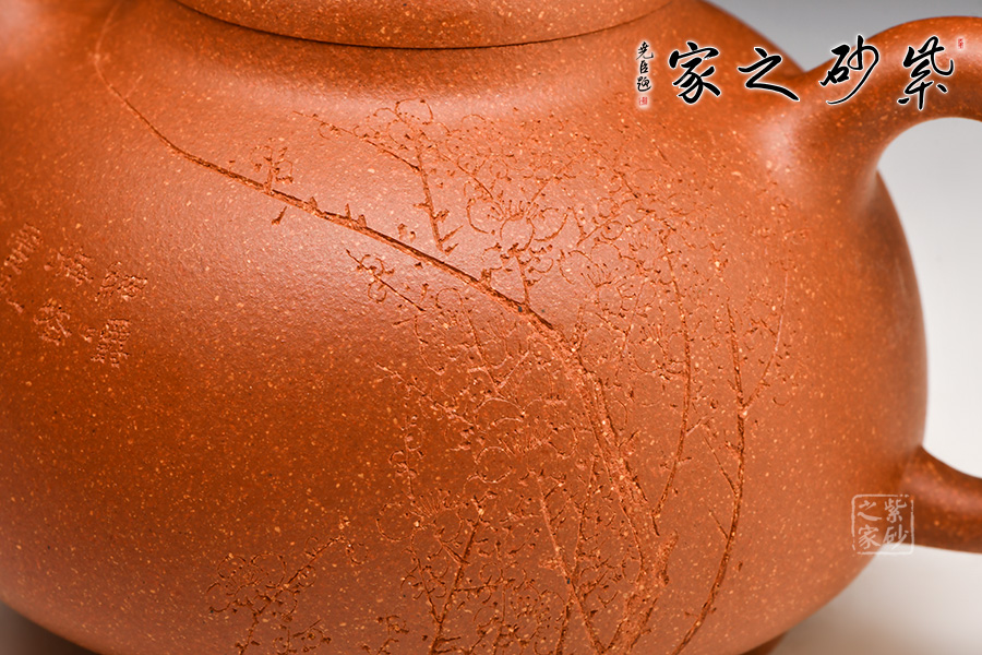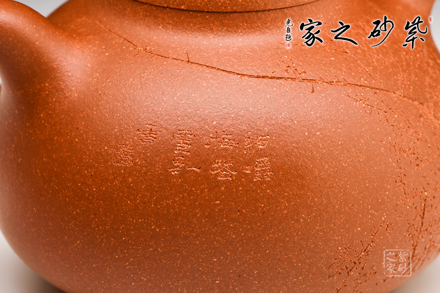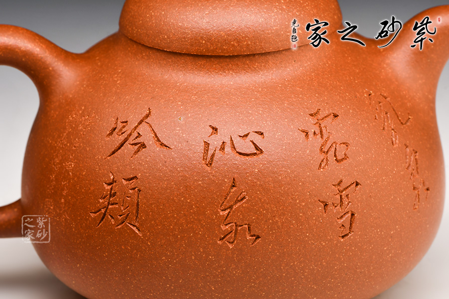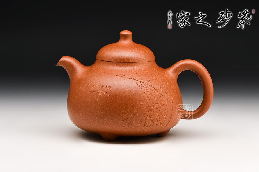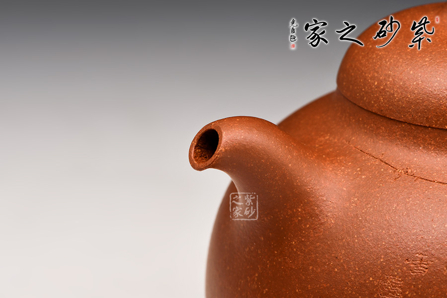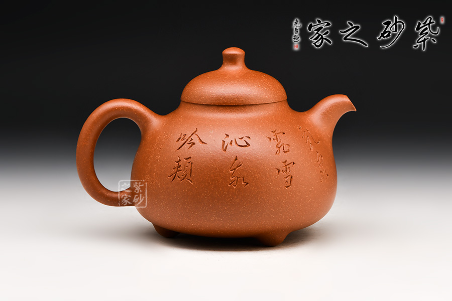 經(jīng)典壺式,壺體呈圓腹、下寬上收;短曲流、耳形柄;乳鼎鈕、三乳足。壺體清秀典雅,線條挺括流暢,色澤溫潤(rùn)細(xì)膩。