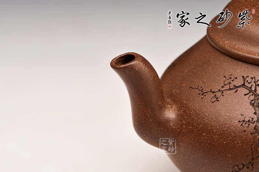 原礦段泥制作而成,泥質細膩,色澤極美。 壺身圓融,流把方圓兼濟,將剛柔之意融入宮燈這款傳統(tǒng)壺型中,更具意境。整款壺形如古代宮燈,線面自然毫無呆滯、造作之感。