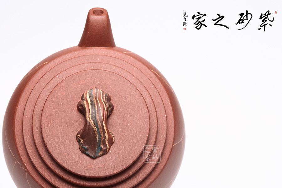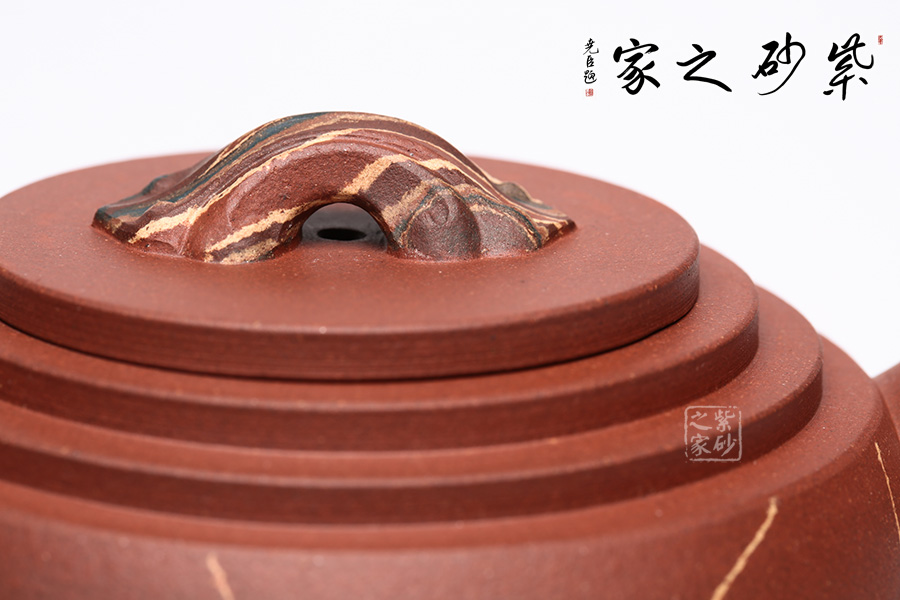 更為令人叫絕的是壺鈕以絞泥的方式點(diǎn)綴,既醒目又與壺渾然一體,把玩猶如美玉般溫潤(rùn)。