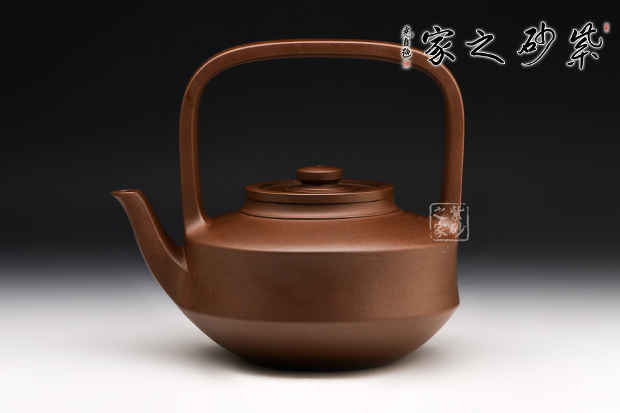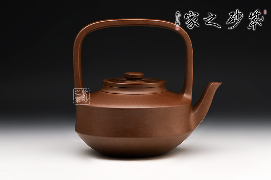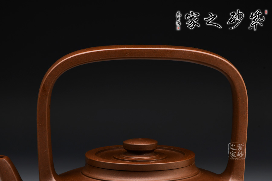 壺身作扁圓柱形,近底微外撇,折收成圓底。比例和諧勻稱,虛實(shí)節(jié)奏協(xié)調(diào),平蓋扁圓鈕、扁提梁,壺嘴從壺腹下部伸出,造型線直中寓圓、柔中見剛,工藝十分精湛。