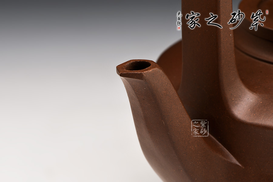 壺蓋、壺身、壺嘴棱角分明,壺蓋、壺身圓形構(gòu)造,壺嘴加以巧妙的曲線,使得圓中有方,然而分明的棱角卻又掩飾不住層層蕩開的波紋,意味無(wú)窮。