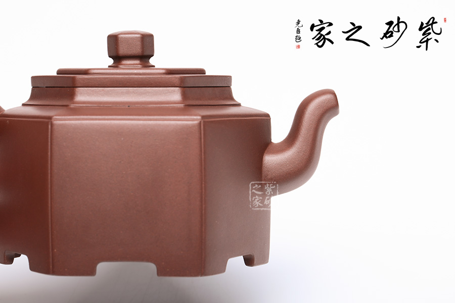 抽角是紫砂壺傳統(tǒng)造型之一,使得壺的結(jié)構(gòu)有豐富的層次感,突出身筒塊面,上下照應(yīng),氣韻貫通。