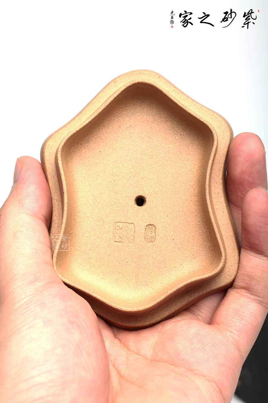 泥性:感甜嫩綿密,質(zhì)堅(jiān)而溫潤,呈近田黃色調(diào),為江蘇宜興趙莊山系朱泥礦~黃石黃之共生礦,經(jīng)挑揀練製而成,因含鐵量只達(dá)6%左右,致陶之后呈“金田黃色”。