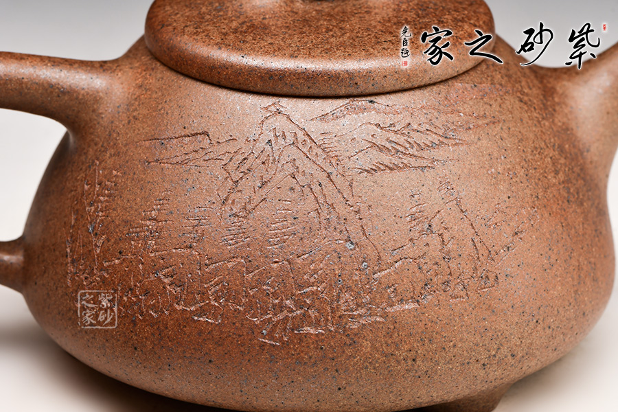 蒯良榮先生制壺的泥料都是自己到泥礦宕口親手挑選,其選泥的過程簡直可與淘金相媲美。成堆的泥料他選不中,往往空手而返,偶爾在那不經(jīng)意的角落,發(fā)現(xiàn)一星半點合意的泥塊如獲至寶,捧回家中分開別類貼上標簽,露天存放使其陳腐,腐熟極致,再專門用石磨磨成泥漿,而后再用篩濾,再磨再濾。精益求精,在此可謂細益求細。臺灣客戶用手捻之,嘆曰:泥中極品!良榮先生藝海耕耘四十余載,集原料選配,設計,創(chuàng)作和燒成技藝于一身。他的作品選型優(yōu)雅,線條挺括,充滿神韻。他創(chuàng)作的各種朱泥小品壺享譽國內及日本、韓國、加拿大等國。他特別擅長制作筋紋器,其代表作“菊瓣元條”、“葵掇球”、“對角如意”在《天地方圓》,《世界藝術家》,《鑒賞珍玩》,《紫泥新韻》,《壺魂》等多種報刊雜志上發(fā)表刊登。
