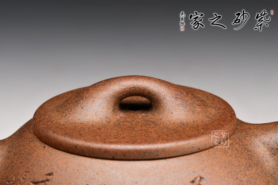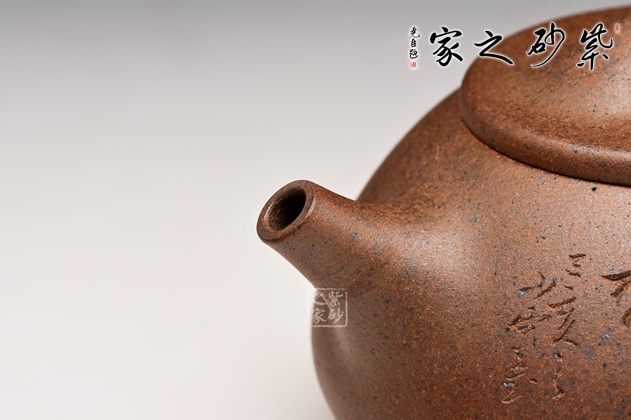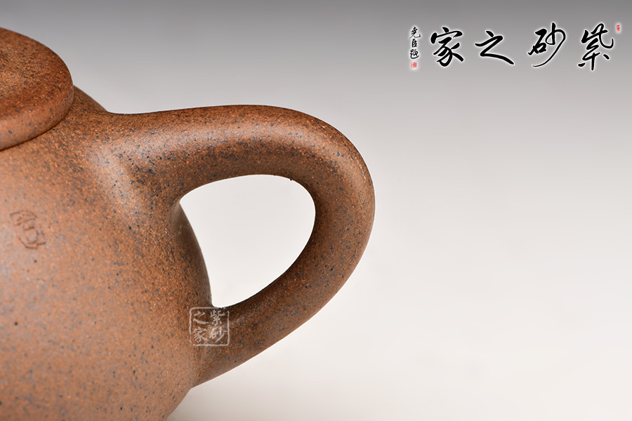 器型古拙,線面簡潔明快,還不失沉穩(wěn)大度。壺嘴采用短而有力的直筒形,出水的力度更加佳,壺鈕如同一條拋物線連接壺蓋兩端,形如拱橋。整款壺的器型精神飽滿,擁有大氣之風(fēng),此乃收藏實(shí)用之佳品,壺友不可錯(cuò)過的杰作。
