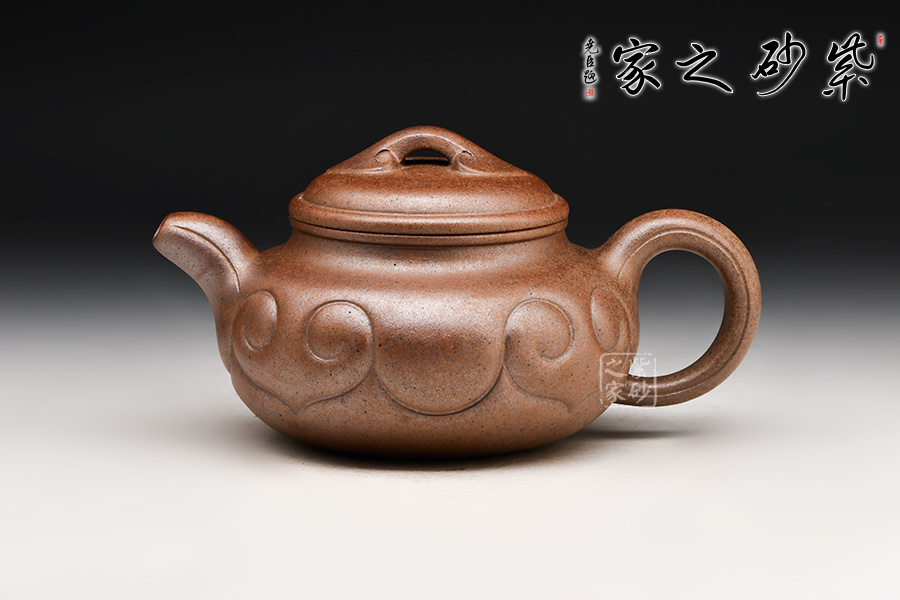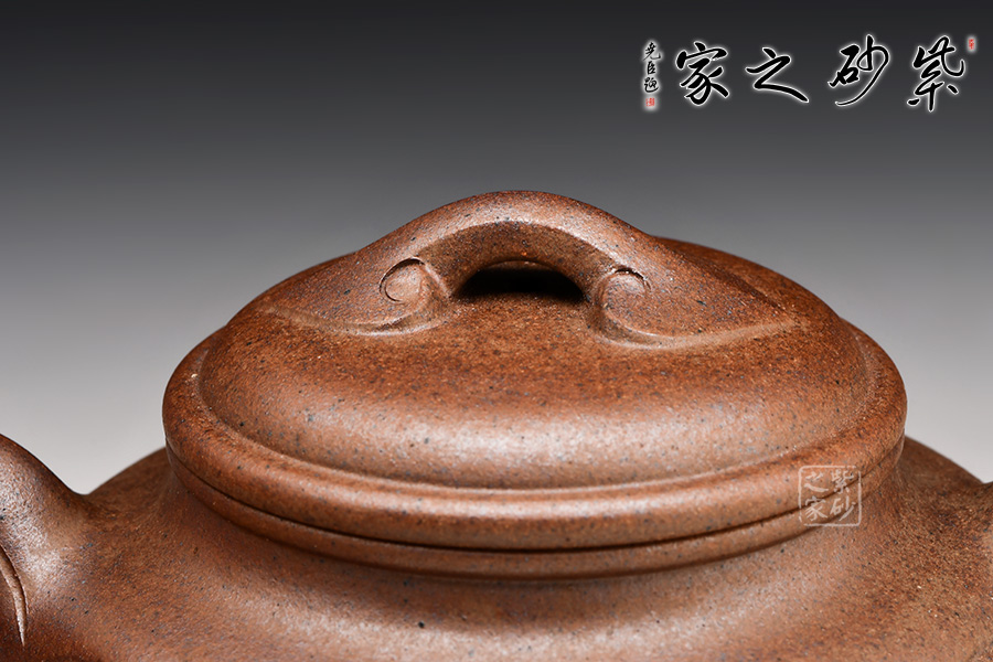 仿古如意在傳統(tǒng)仿古扁壺造型上加飾如意筋紋,身、蓋、頸、腹、鈕,錯(cuò)落有致,骨肉亭勻。壺的口沿與壺蓋截成一條圓線,口蓋各占一半,蓋子蓋上即合成飽滿的圓線,其對(duì)作者的考量可想而知。壺流胥出自然,壺把勻勢(shì)而起,且與壺身如意貫氣。壺鈕為如意形橋梁式,平緩舒展合體,整器精美絕倫,呈悠然、典雅之美。