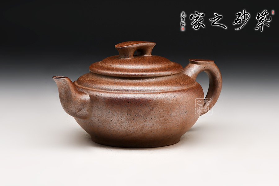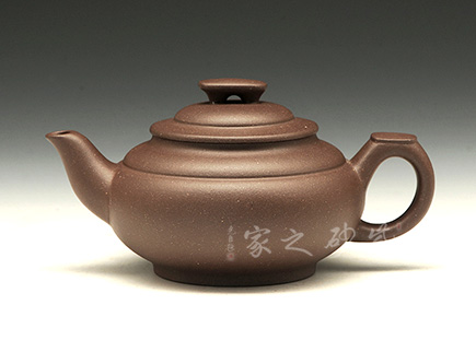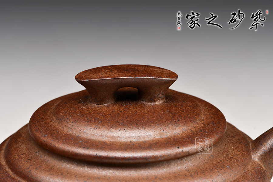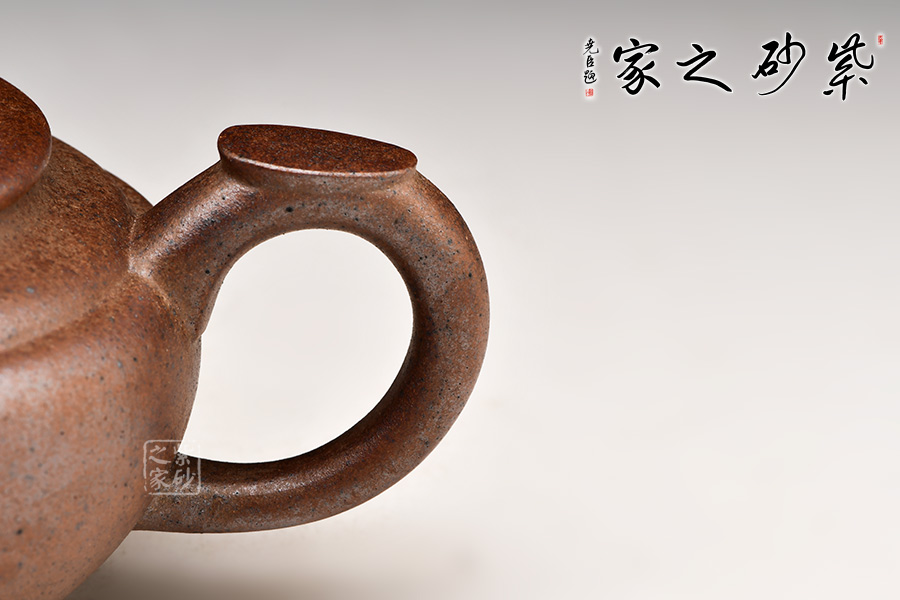 上新橋壺型是顧景舟大師六十年代為大生產(chǎn)打樣創(chuàng)制而成,后成一代經(jīng)典。壺身呈扁圓形,折腹圈足,曲流,環(huán)狀柄,柄有寸貼,以便手指著力,匠心獨(dú)運(yùn)。壓蓋式,橋形鈕,蓋部及肩部均以凹線分割,自上而下以觀,環(huán)環(huán)相扣之感。