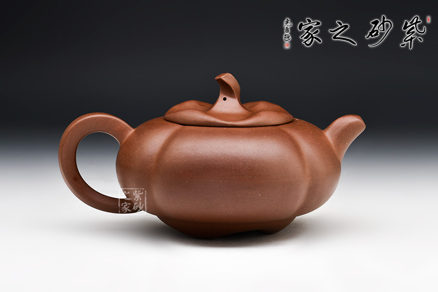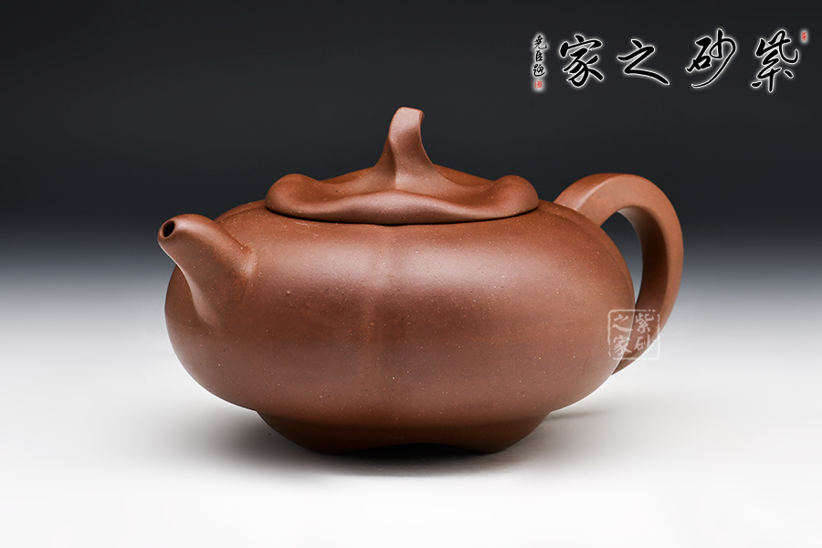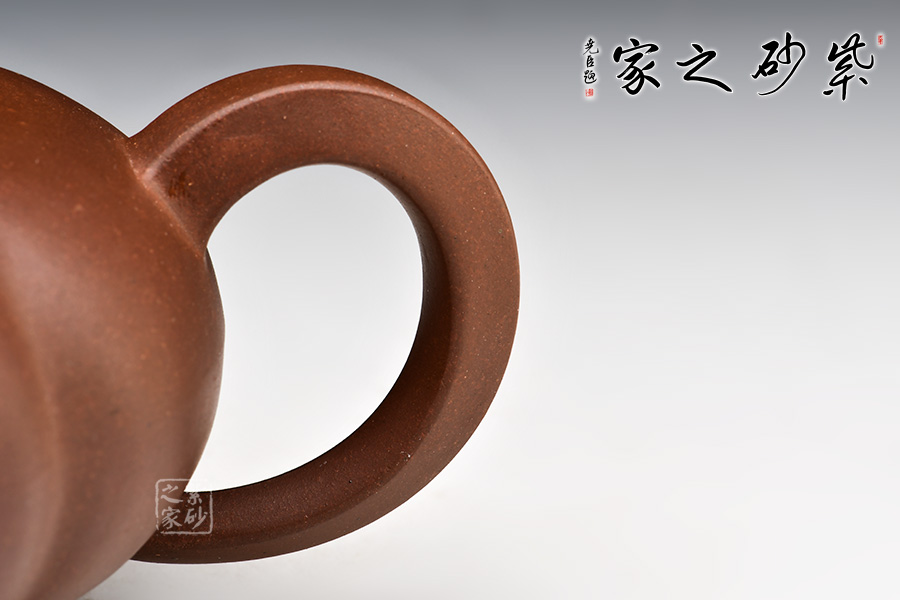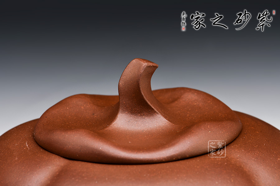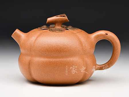 此壺以柿子為主題,壺身扁圓,帶筋紋紋理,以四條對稱的凹線,形成四瓣柿身直至壺底。壺肩轉折明顯,圓中寓方。單口壓蓋,壺口開出不對稱的海棠狀,整器渾然一體,形態(tài)逼真。
