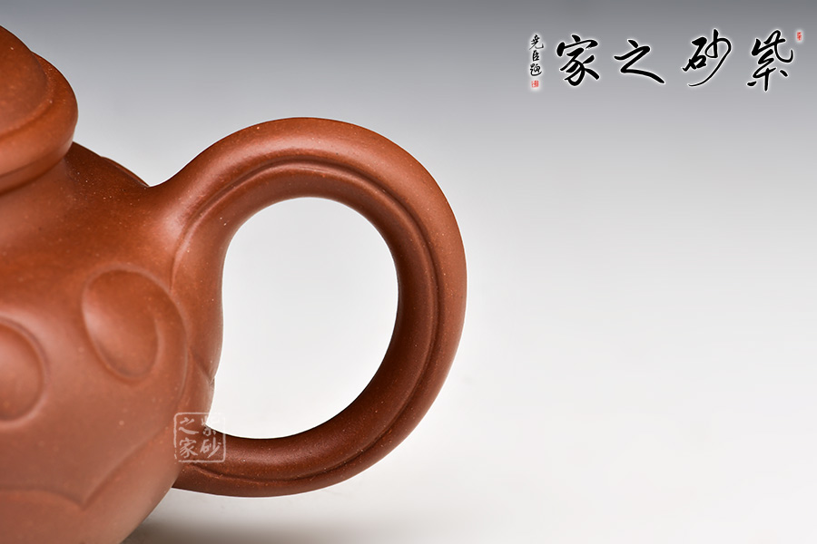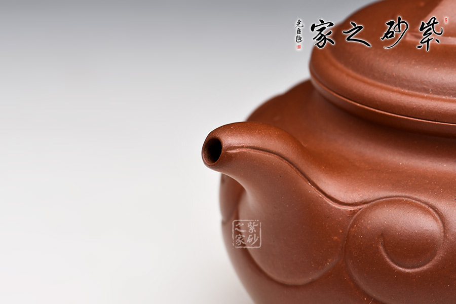 壺的口沿與壺蓋截成一條圓線,口蓋各占一半,蓋子蓋上即合成飽滿的圓線,其對作者的考量可想而知。壺流胥出自然,壺把勻勢而起,且與壺身如意貫氣。壺鈕為如意形橋梁式,平緩舒展合體,整器精美絕倫,呈悠然、典雅之美。