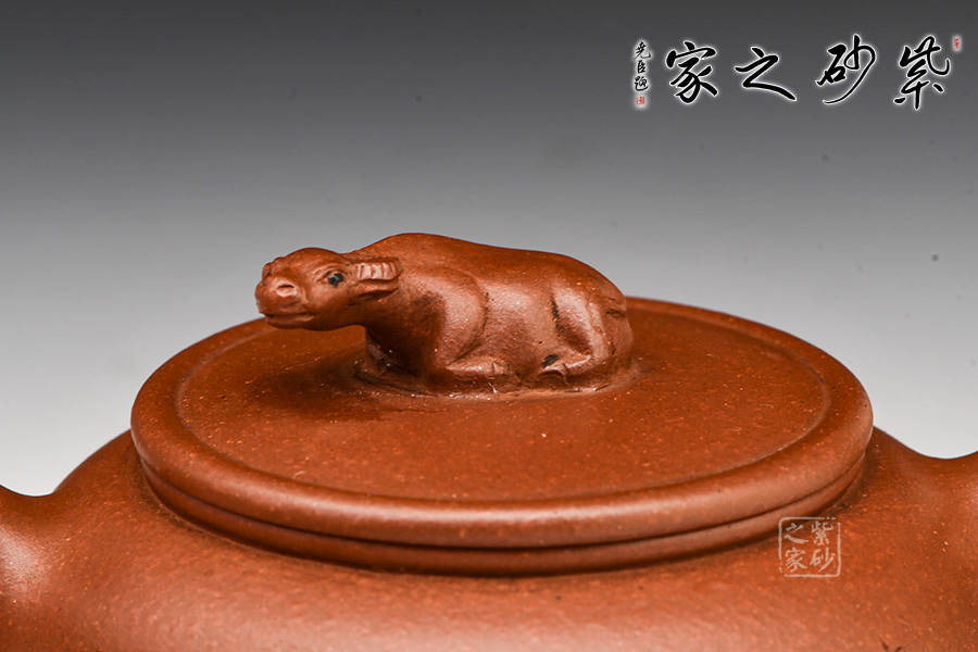 作者以泥代筆,臨摹意趣,以憨態(tài)可掬的江南水牛做壺鈕,將孺子牛的精神藏于紫砂之中,將文學(xué)與紫砂相結(jié)合,意趣非凡。、