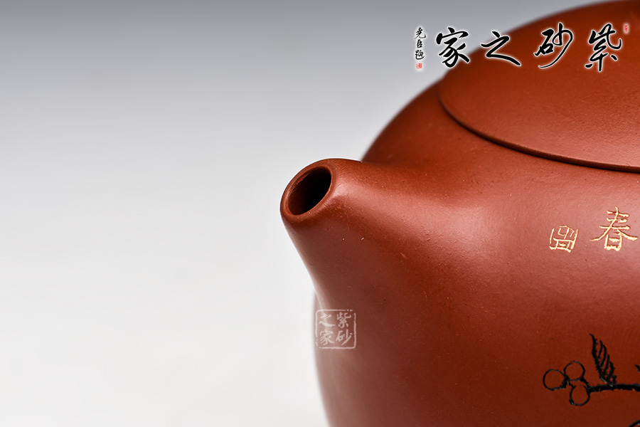 特點(diǎn):質(zhì)感綿密、緊實(shí)細(xì)緻,持之扎實(shí)沉重、紅潤豔麗,泥中極品,無以倫比;泥胚含少許原礦顆粒,沖淋熱水后色變極大,呈紅中帶紫,養(yǎng)壺易現(xiàn)“包漿”之美。