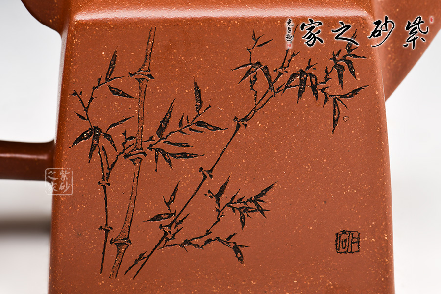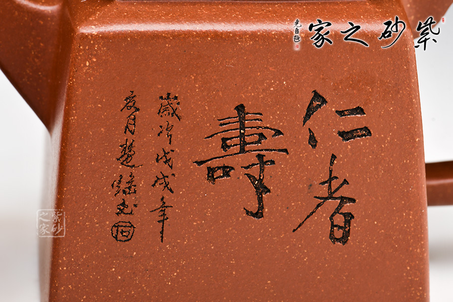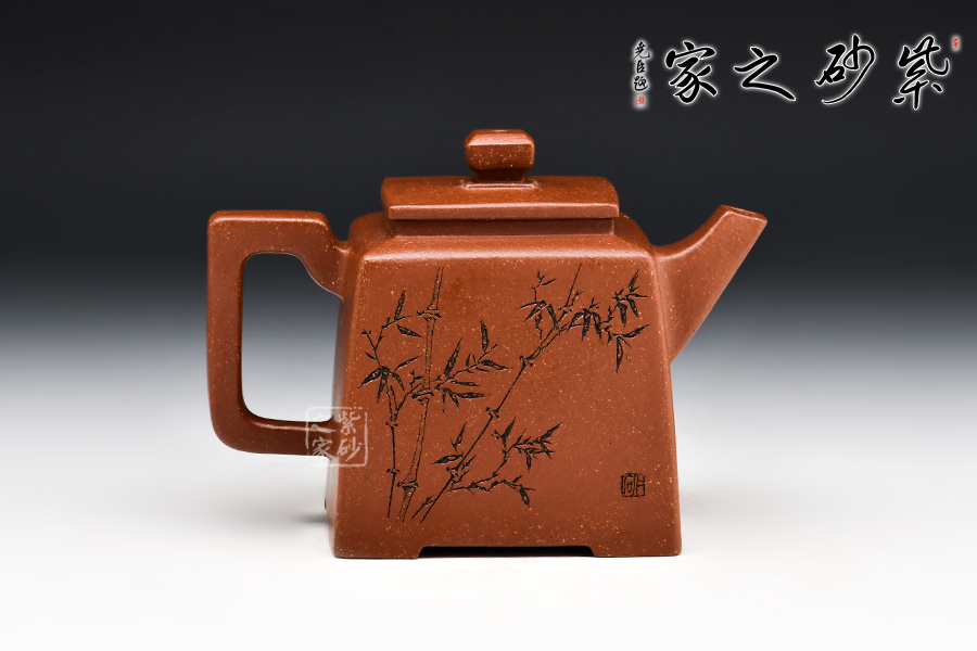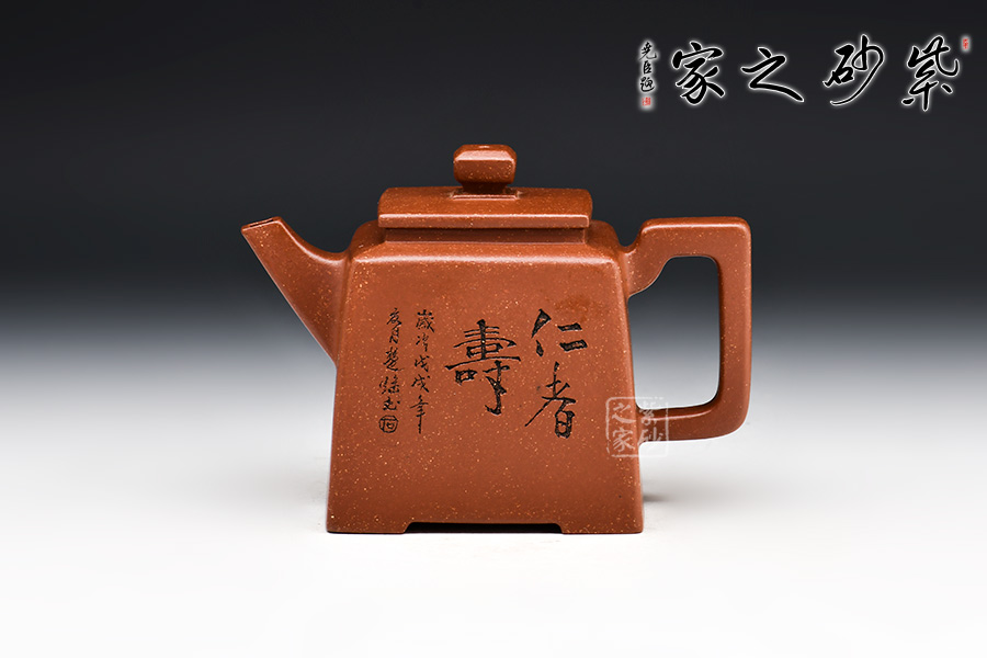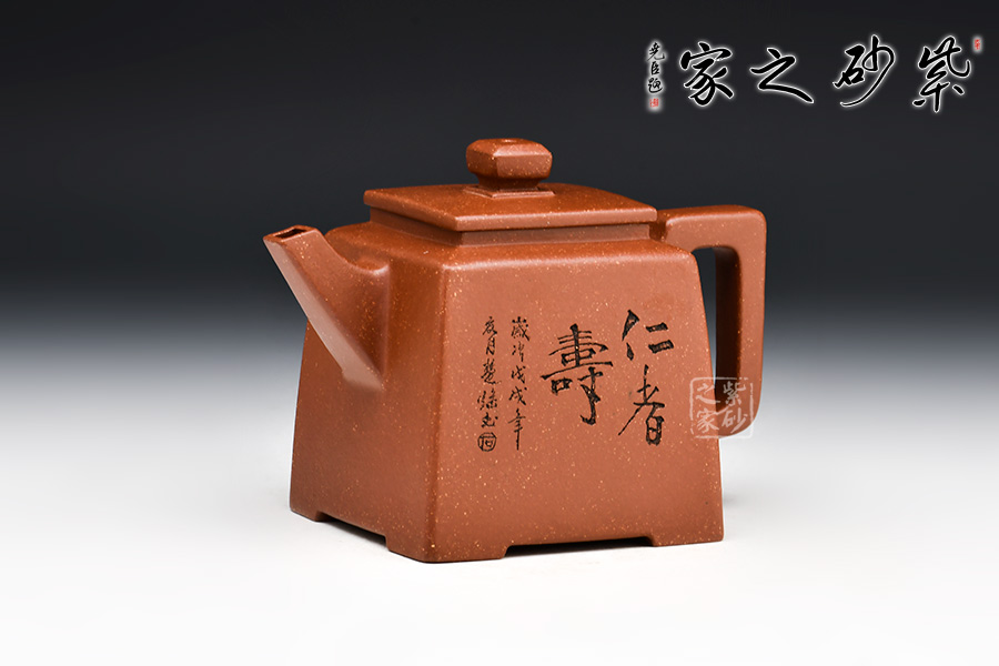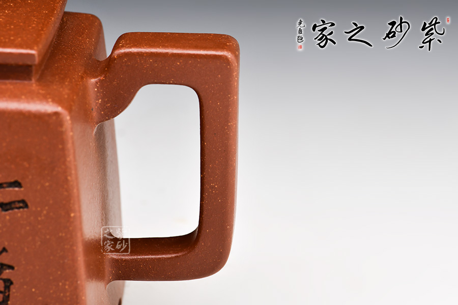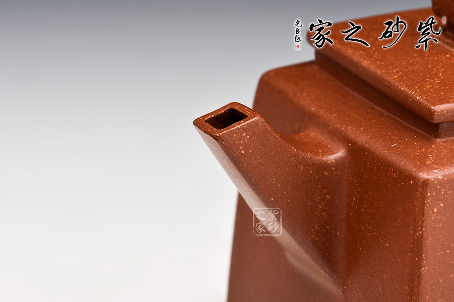 四方高升壺形體優(yōu)美,工藝嚴(yán)謹(jǐn),氣韻生動(dòng),造型古樸,技法獨(dú)特。整體采用稀有泥料降坡泥制成,透氣性強(qiáng),表面有清晰的五彩斑斕的天然顆粒,煞是好看。壺身、壺嘴、壺蓋、壺鈕、壺把皆為方形,塊面挺括,線條利落,比例準(zhǔn)確,透露出豪爽、剛勁、正直的陽(yáng)剛之氣。