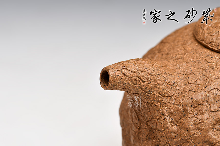 泥性:感甜嫩綿密,質(zhì)堅(jiān)而溫潤,呈近田黃色調(diào),為江蘇宜興趙莊山系朱泥礦~黃石黃之共生礦,經(jīng)挑揀練製而成,因含鐵量只達(dá)6%左右,致陶之后呈“金田黃色”。