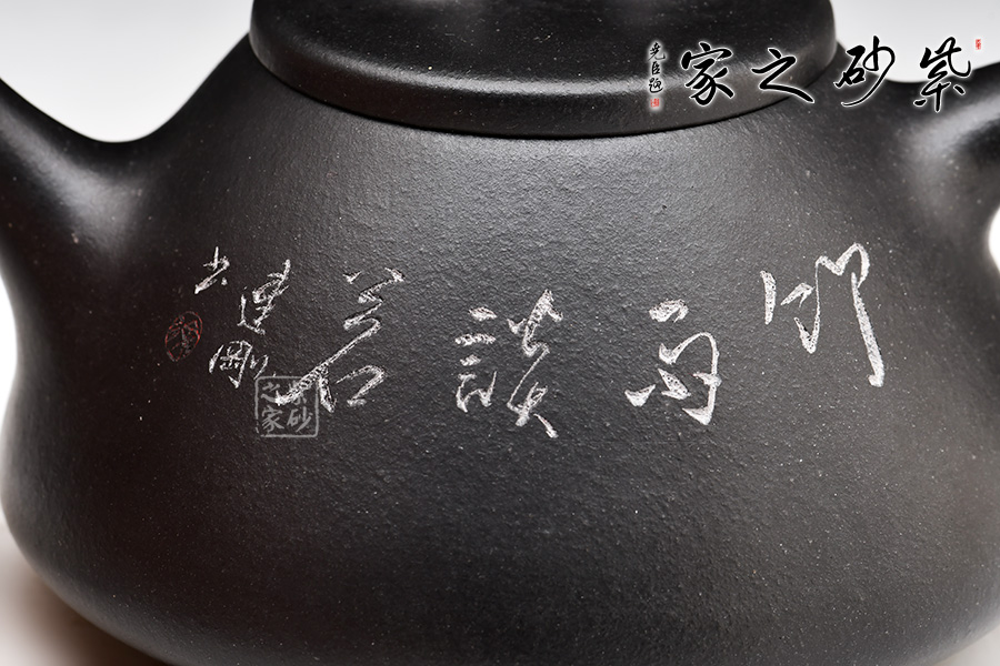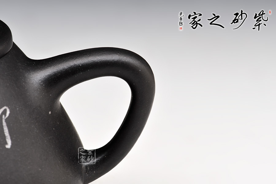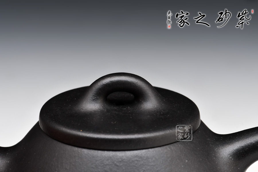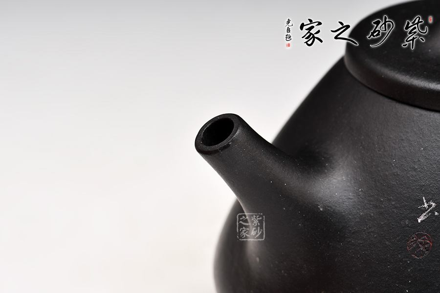 色澤黑紫,質(zhì)地純粹,泥質(zhì)細(xì)膩;嘴、把、蓋、鈕、足處處銜接自然流暢,起承轉(zhuǎn)合交待清楚,是件“智欲其圓、行欲其方、剛?cè)峒媸?,允克用藏”的珍品?/span>