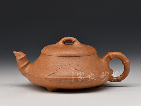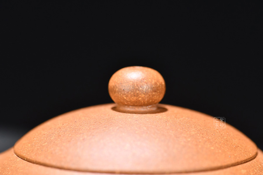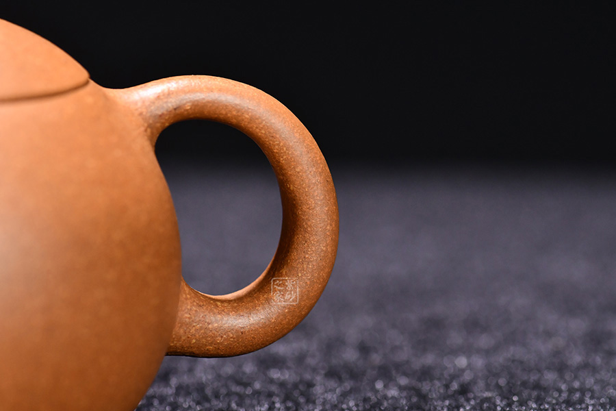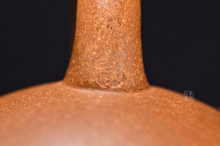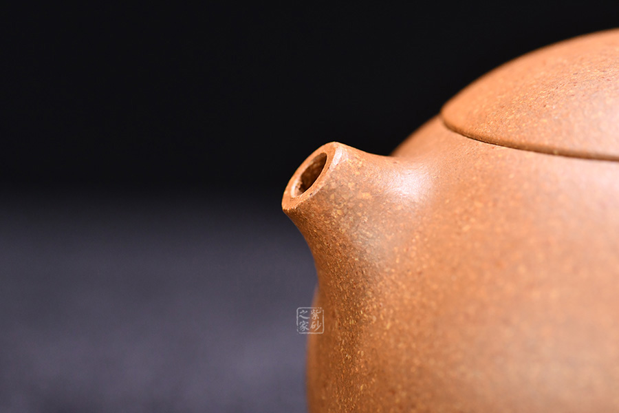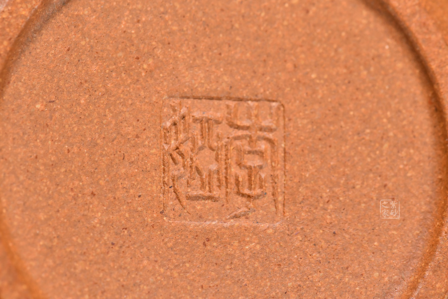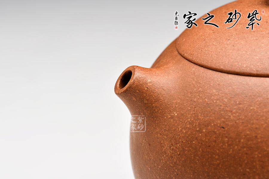 此壺線面簡潔流暢,壺身圓潤豐盈,將女子的優(yōu)雅飄逸展露無遺。壺嘴流短而粗大,身蓋相連呈截蓋,鈕為圓狀。壺流與把和諧對稱,壺底向里收斂,視覺上更顯穩(wěn)重大氣。