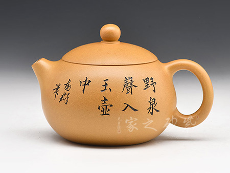 西施壺,容量250cc,精選稀有泥料黃降坡泥制作而成,色澤田黃,光潤細(xì)膩。