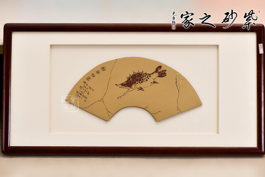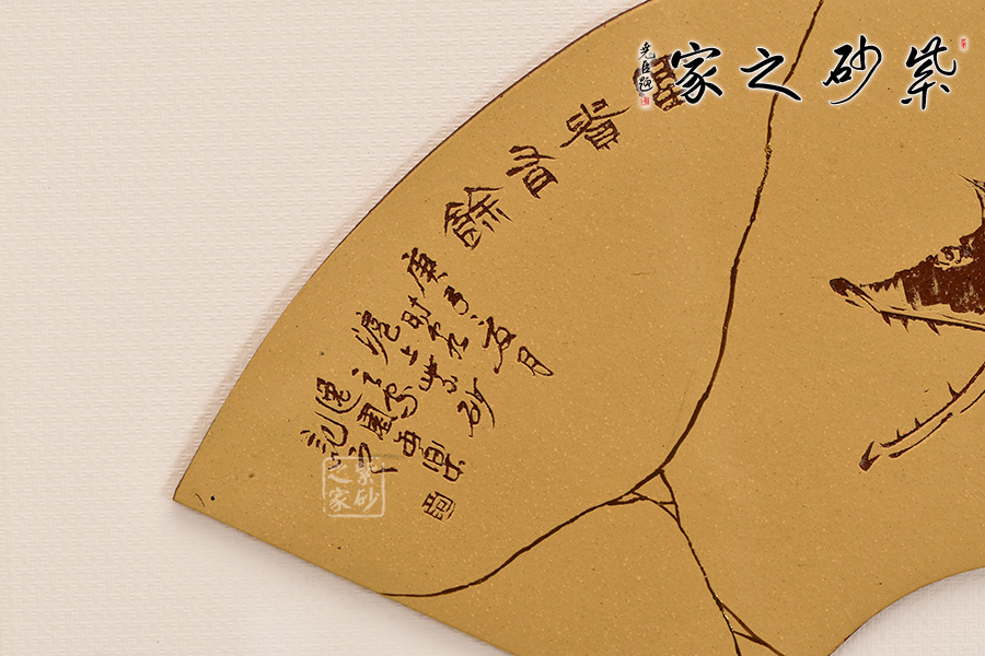 紫砂賞盤是隨著紫砂發(fā)展而衍生出來的一類藝術(shù)品種,它融書法、繪畫、金石篆刻等藝術(shù)形式為一體,是中國文人、陶藝從業(yè)者悉心合作的結(jié)晶,它既可掛于壁端,也可用紅木架置于幾案之上供人欣賞,是文人墨客的書房尤物。 范小君老師制作的這款“富貴有余”,整體來看材質(zhì)渾樸,獨(dú)具典雅莊重。