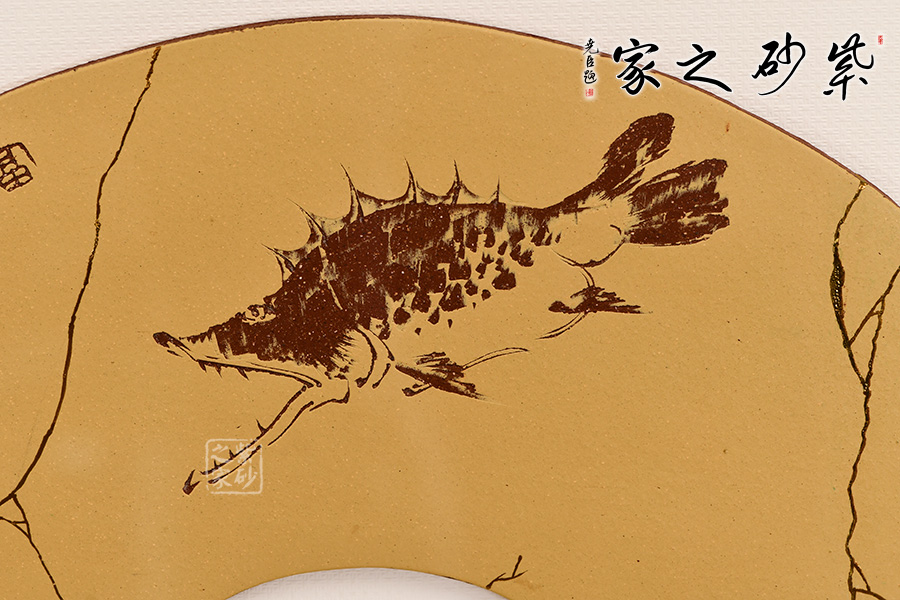 盤面刻繪鱖魚,栩栩如生,鱖魚又象征富貴,寓意富貴吉祥,與主題兩兩相呼應(yīng)。
