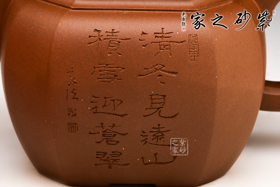 光貨離不開裝飾。俗話說“壺隨字貴,字隨壺傳”:光壺不刻字,就是一把光壺;壺上面刻了大師、名人的字,一把壺的含金量就高了,收藏價(jià)值就更高,升值潛力就更大。王福君與中國工藝美術(shù)大師譚泉海合作最多,其次是徐安碧、鮑志強(qiáng)、毛國強(qiáng)(均為中國工藝美術(shù)大師、中國陶瓷藝術(shù)大師)。