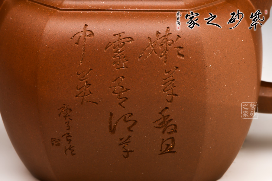 光貨離不開(kāi)裝飾。俗話說(shuō)“壺隨字貴,字隨壺傳”:光壺不刻字,就是一把光壺;壺上面刻了大師、名人的字,一把壺的含金量就高了,收藏價(jià)值就更高,升值潛力就更大。王福君與中國(guó)工藝美術(shù)大師譚泉海合作最多,其次是徐安碧、鮑志強(qiáng)、毛國(guó)強(qiáng)(均為中國(guó)工藝美術(shù)大師、中國(guó)陶瓷藝術(shù)大師)。