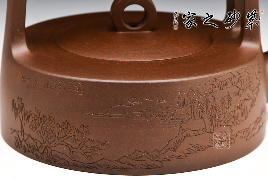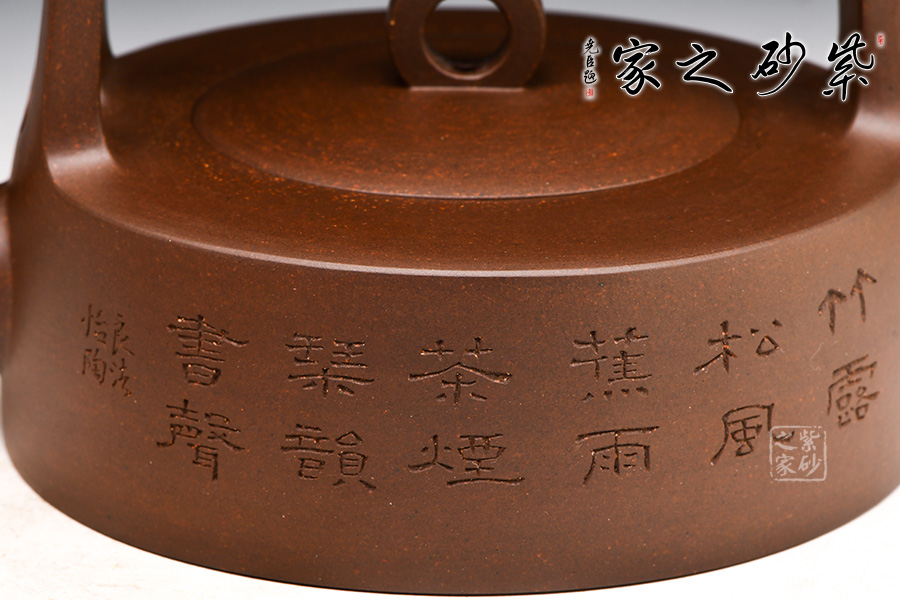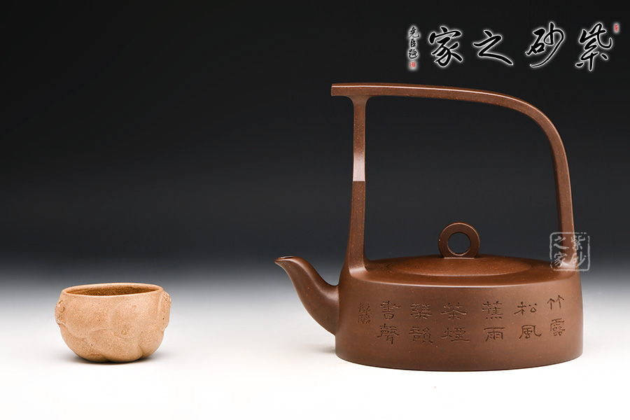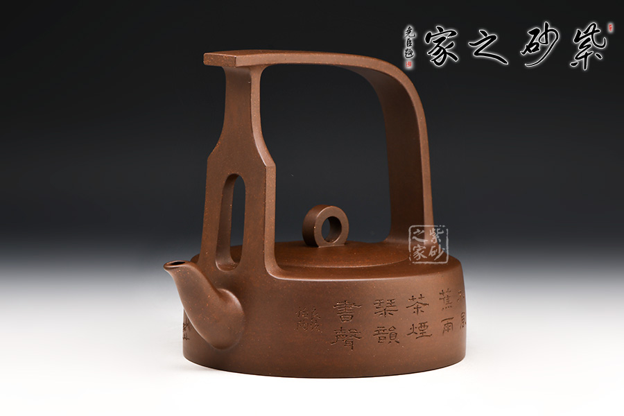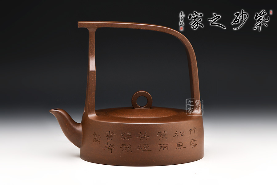遠(yuǎn)觀此壺有如飛鳥于天,變化提梁的型式及空心蓋鈕以虛襯實(shí),塑造耐人尋味的效果。