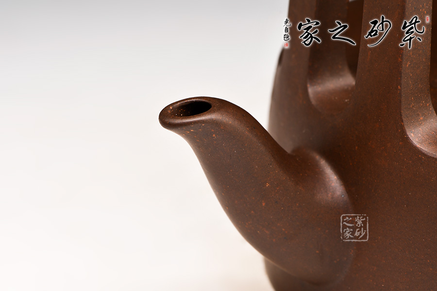 壺身豐厚扁圓穩(wěn)住了上半部飛揚(yáng)的勁勢(shì),流則渾厚有力。