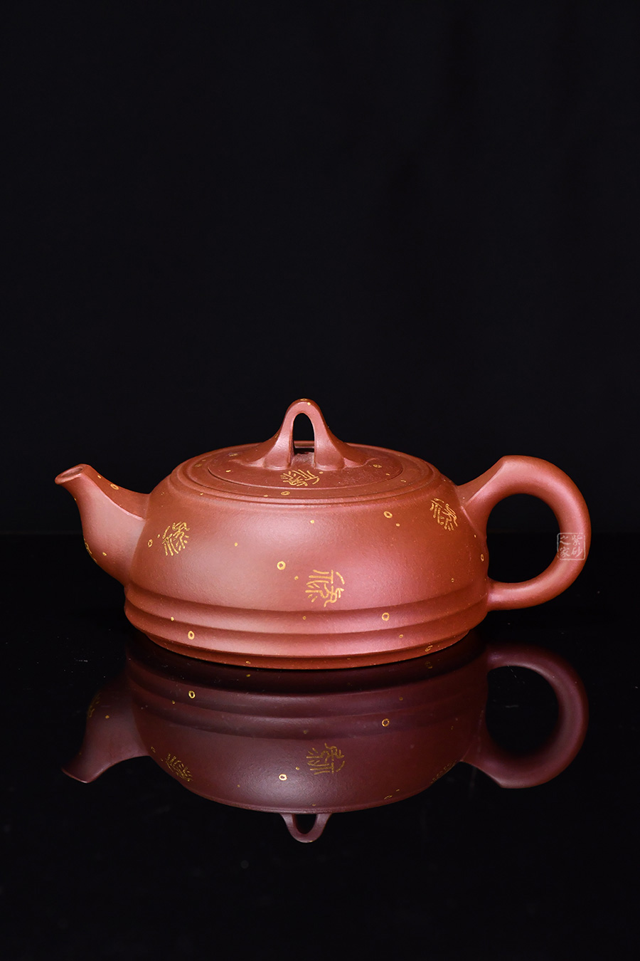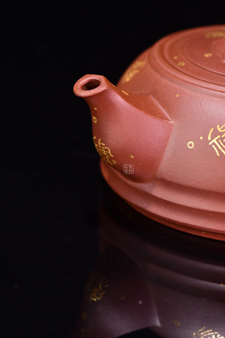 賀老師新品。采用原礦底槽清手工精制,并以24K真金描繪。此壺造型雍容尊貴,做工細(xì)致,細(xì)節(jié)處理堪稱完美。泥料、做工、裝飾無可挑剔,強(qiáng)烈推薦!